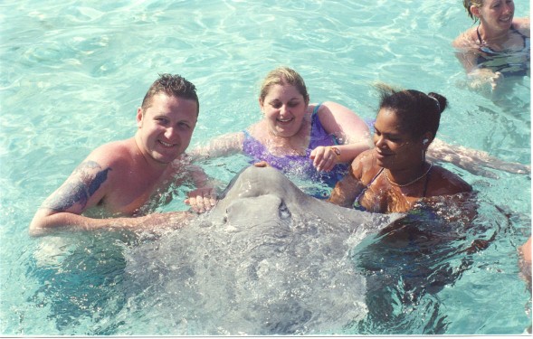 feeding Fluffy, the pregnant stingray (3/31/02)