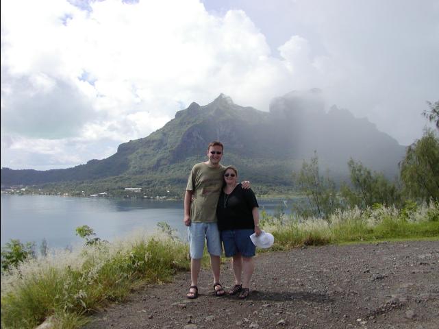 There are lots of wedding and honeymoon pics on our wedding website. Those second two honeymoon pics aren't on that site because they weren't taken by us (they were taken by the Club Med photographer) and only the digital pics are on the website. The first one, though on the website, is oddly one of the very few we're both actually in! The scenery was just too pretty :)